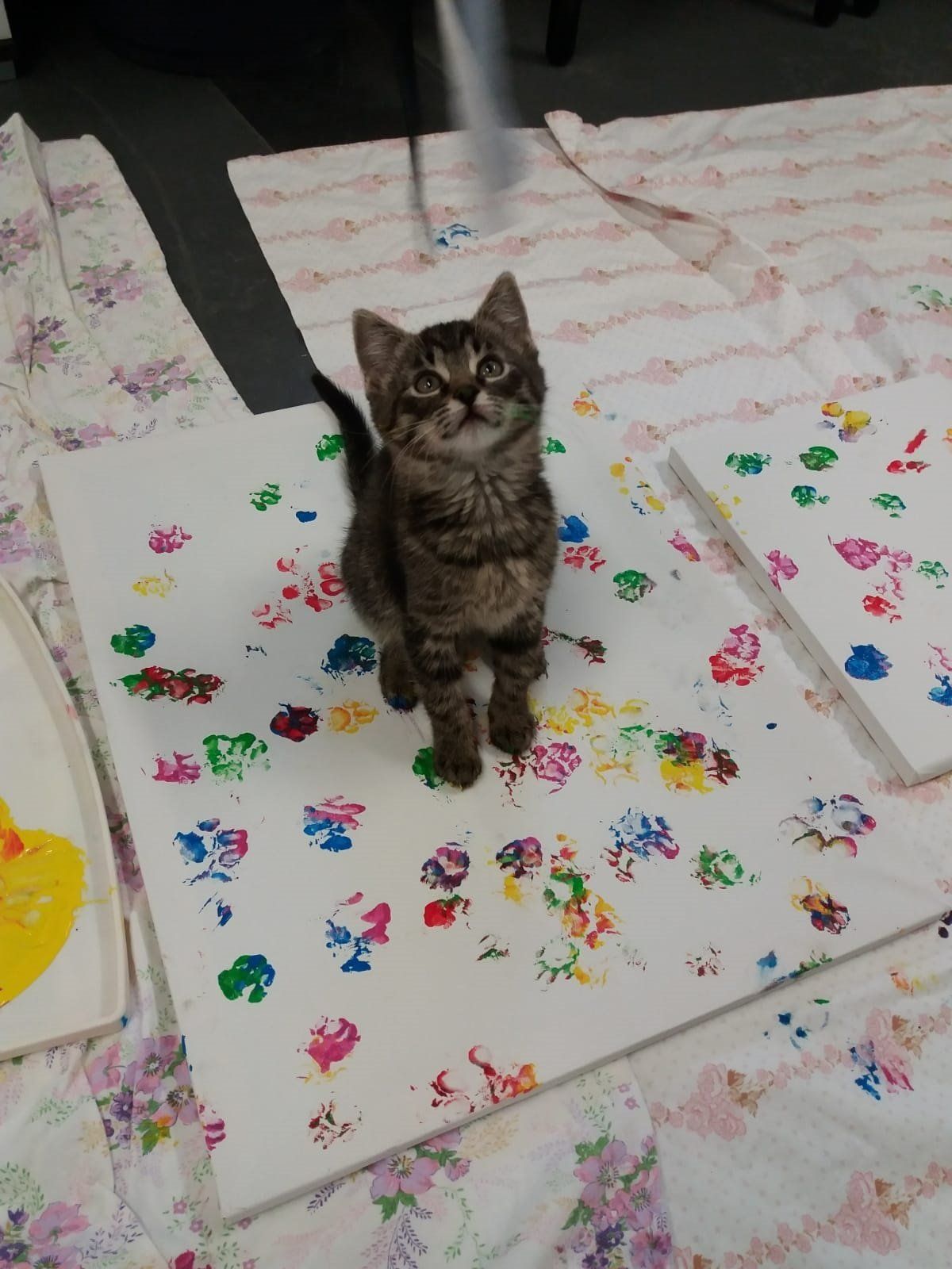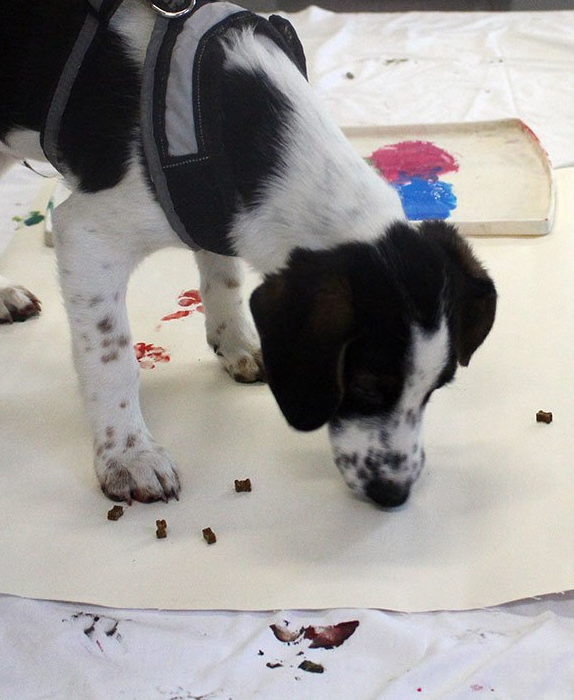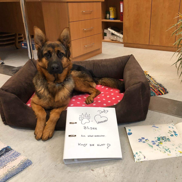 Auch bieten wir die Möglichkeit, dass z.B.: Hundepaten ein Bild ihres Schützlings im Tierheim "bestellen" können. Das dauert nur ein bisschen, denn die Tiere werden behutsam an die "Pfotenmalerei" herangeführt. Es geschieht alles absolut freiwillig und ohne Stress. Im Gegenteil, die Tiere lieben diese geniale Abwechslung .